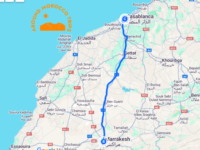 Map: 2 days Casablanca to Marrakech trail