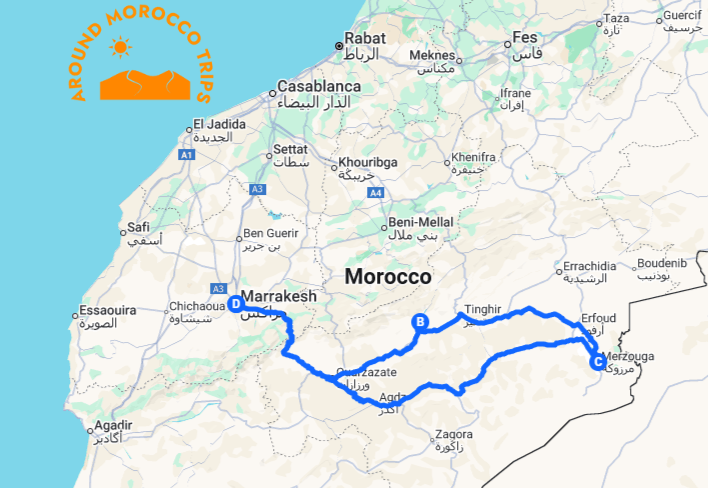 4 Days Marrakech to Merzouga Morocco tour is an ideal alternative to rushed desert trips. This extended itinerary allows you to travel at a relaxed pace while fully exploring the beauty and diversity of southern Morocco. Over four days, you’ll have enough time to discover fascinating landscapes, rich cultural heritage, and historical and geological sites. From the High Atlas Mountains and ancient kasbahs to palm-filled valleys and the majestic dunes of Erg Chebbi, this journey offers a well-balanced blend of nature and culture, without feeling hurried.