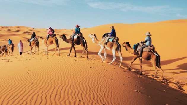 After breakfast, you’ll head south through the Middle Atlas Mountains. Make a short stop in Ifrane, known for its clean streets and alpine-style architecture. Continue through cedar forests to have fun with wild mokeys then,  stop for lunch in Midelt or whenever you need to eat. In the afternoon, we’ll continue our desert trip  to Merzouga. Upon your  arrival, you’ll ride camels into the golden dunes of the Sahara and enjoy the sunset. Spend the night in a desert camp with dinner and traditional music around campfire with locals.