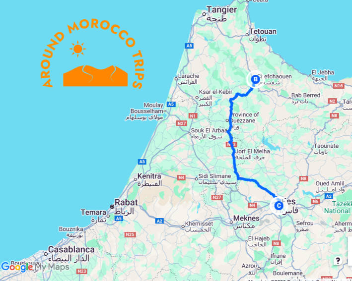 Day trip Fes to Chefchaouen offers the chance to discover famous blue town in just one day. The journey begins in the morning with a drive via the Mountains of Rif, passing villages and green valleys before reaching Chefchaouen by late morning. Once there, you can wander through the medina’s blue-painted streets, visit the central square and Kasbah, and enjoy the laid-back rhythm of the town. In the afternoon, there is time for a relaxed lunch, browsing local handicrafts, or walking up to the Spanish Mosque for a panoramic view. By early evening, the return trip brings you back to Fes after a full day of exploration.
