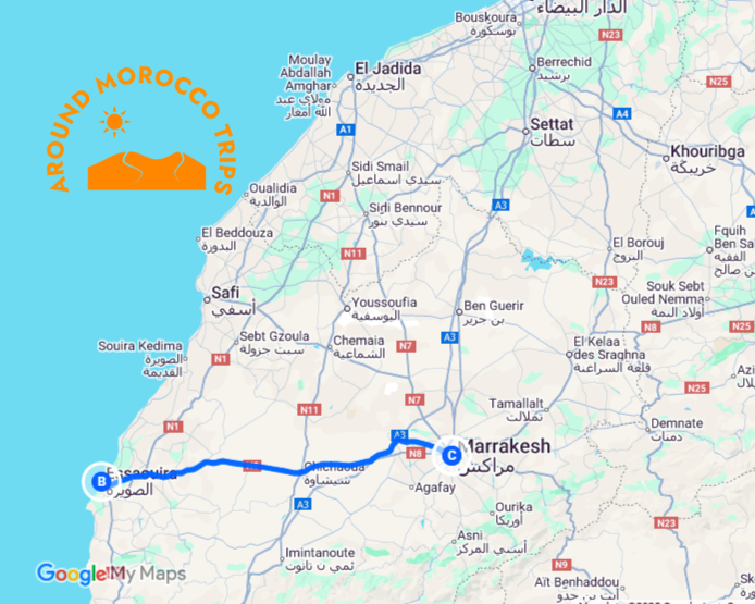 Day trip Marrakech to ESSAOUIRA ( city of wind ), leading you toward the calm and refreshing atmosphere of the Atlantic coast. Surrounded by rolling landscapes dotted with argan trees and traditional villages, the journey itself sets the tone for a slower pace and a change of scenery. Once in Essaouira, the coastal breeze, historic walls, and artistic spirit welcome you into a town that feels both authentic and timeless.